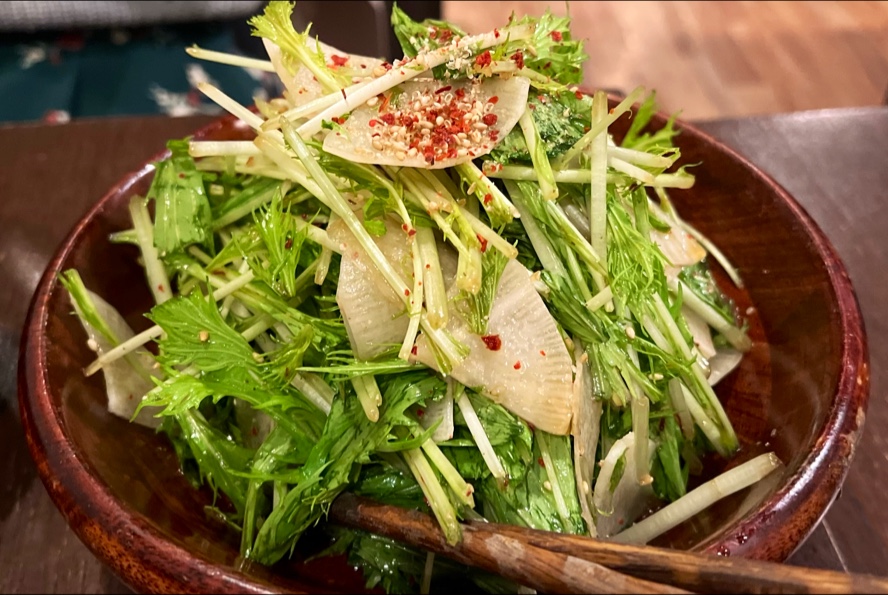 For those who are in the mood for something refreshing, the 水菜と大根のサラダ (mizuna and daikon salad) is a delightful choice. The crisp, peppery mizuna and the mild, crunchy daikon radish provide a light and refreshing contrast to the rich flavors of the grilled meats, adding a perfect balance to the meal.